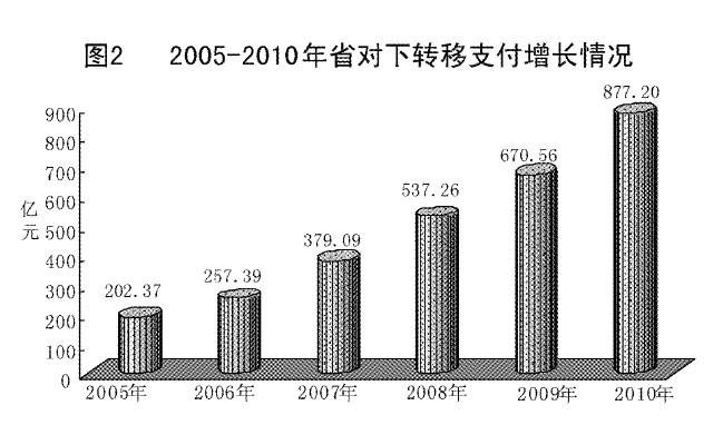 (五)缓解县乡财政困难取得新成效。为提高县乡财政保障能力,在前几年实施“五奖一补”政策、建立“五个机制”的基础上,去年省级又推出“五项新举措”,进一步加大了对基层财政的帮扶力度。建立县级基本财力保障机制,在保持原有对下转移支付规模不减的基础上,结合中央财政支持,省级筹措14亿元,对自身财力不能满足基本支出需求的60个财政困难县(市、区)给予补助,进一步增强了基层财政保工资、保运转、保民生的能力。建立市级统筹区域均衡发展激励机制,省级对各市均衡所辖县(市、区)人均财政支出水平给予奖励,鼓励各市加大对下转移支付力度,缩小辖区内县级财力差距。建立主体税收增长激励机制,省级对市县上缴省财政的营业税、企业所得税、个人所得税增幅超过15%以上部分,给予全额返还,调动市县加强主体税种征管、提高收入质量的积极性。完善出口退税分担办法,对市县负担的出口退税比上年增长15%以上部分,省级负担比例由25%提高到50%,缓解了基层财政的出口退税压力。建立生态转移支付制度,结合中央财政支持,省级落实资金1.80亿元,对23个县(市、区)给予生态功能区转移支付。初步统计,2010年省对下各类转移支付资金达877.20亿元,比上年增长30.8%。省财政重点帮扶的60个财政困难县,按财政供养人口计算,人均财力达到4.97万元,比上年提高1.02万元,财政保障能力明显增强。