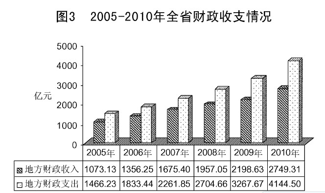 据快报统计,2010年,全省一般预算收入2749.31亿元,完成预算的111.8%,比上年增长25.1%(其中经常性收入增长22.1%)。全省一般预算支出4144.50亿元,完成预算的117.7%,比上年增长26.8%。其中,农业、教育、科技支出,分别比上年增长26.8%、25.5%、33.1%,均高于经常性收入增幅。当年全省一般预算收入,加地方政府债券收入、中央税收返还和转移支付补助及上年结转收入等1870.43亿元,收入共计4619.74亿元。当年全省一般预算支出,加上解中央支出及结转下年支出等469.96亿元,支出共计4614.46亿元。全省收支相抵,累计净结余5.28亿元。