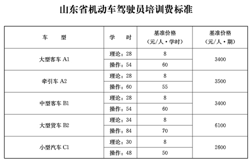 附件:山东省机动车驾驶员培训费标准
