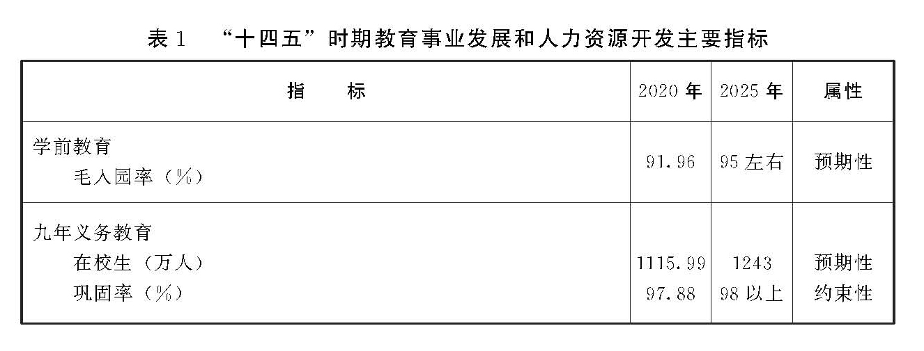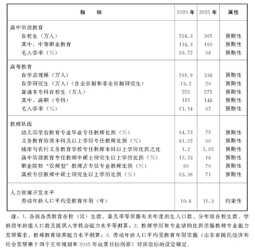 山东省“十四五”教育事业发展规划
