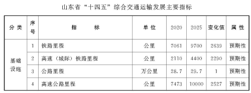 1.打造轨道上的山东。按照内联外通、适度超前的原则,加快形成干线铁路、城际铁路、市域铁路、城市轨道交通“四网融合”的客运轨道交通网络,完善干支相连、专线延伸的货运铁路网络。到2025年,全省铁路总里程力争达到9700公里。