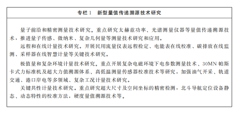 (一)加快关键核心技术攻关。加强计量测试理论、方法与应用技术研究,重点推进计量数字化转型以及计量器具远程、在线、嵌入式校准技术研究。针对极端条件、复杂环境和实时工况的计量需求,研究复杂条件下的量值传递溯源等共性技术。加强分布式系统和传感器网络计量技术研究,突破动态、在线、原位校准技术瓶颈,解决极端量、复杂量、微观量等多参量和综合参量的准确测量难题。(省市场监管局牵头,省科技厅配合)