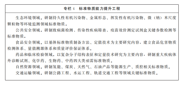 (二)加大标准物质研制应用。围绕产业链,紧贴测量链,加快新能源新材料、智慧海洋、生物制药、绿色化工等重点产业标准物质的研制,增强核心材料和关键技术自主可控能力。强化标准物质量值和不确定度水平核查,建设标准物质量值核查验证实验室,提升标准物质全寿命周期监管能力。加强应急用标准物质实物和生产能力储备,增强战略性、公益性标准物质供给。(省市场监管局牵头,省政府有关部门配合)