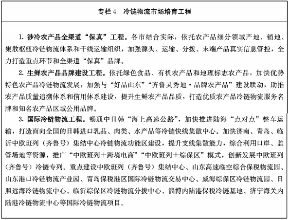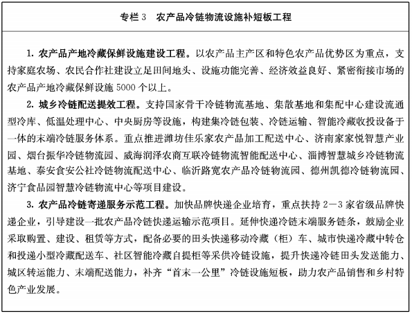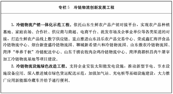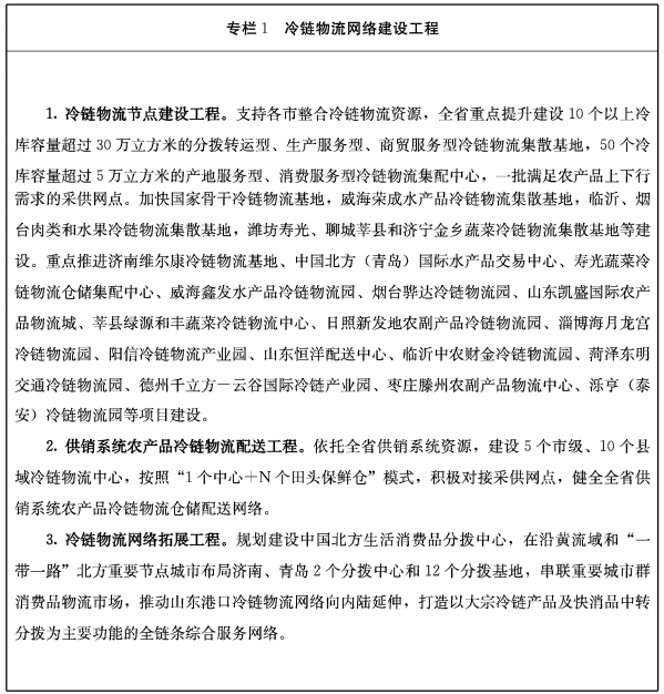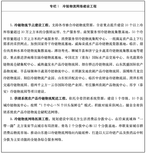 山东省“十四五”冷链物流发展规划