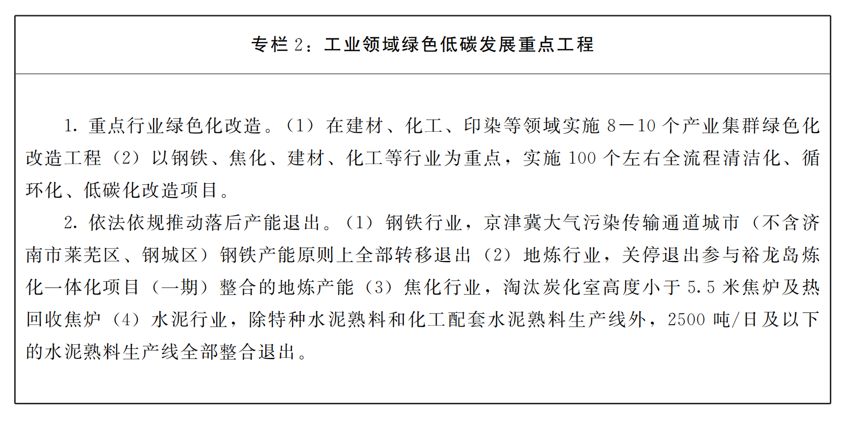 (二)工业领域碳达峰工程。