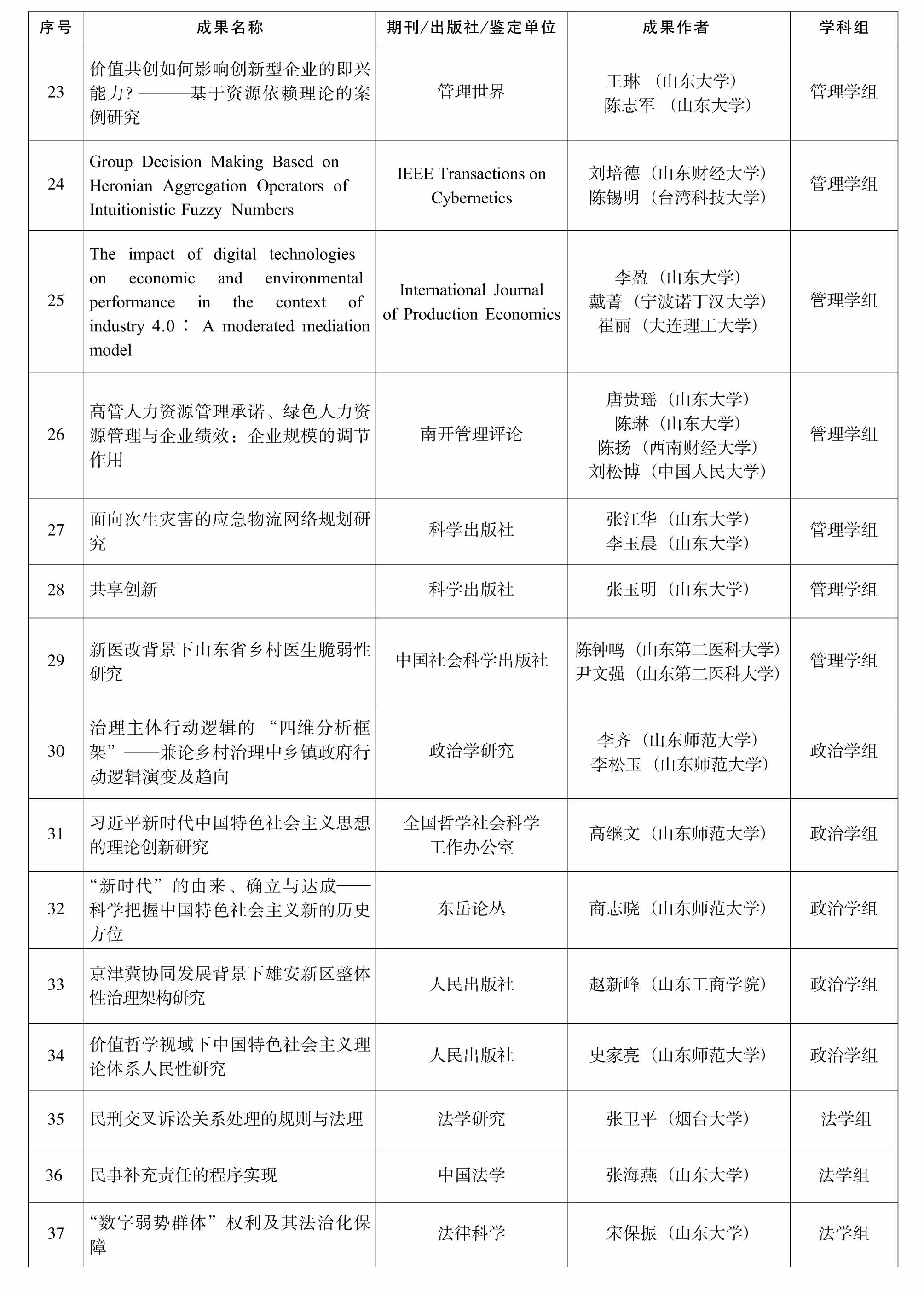 2. 山东省第十六届社会科学突出贡献奖、学科新秀奖获奖名单
