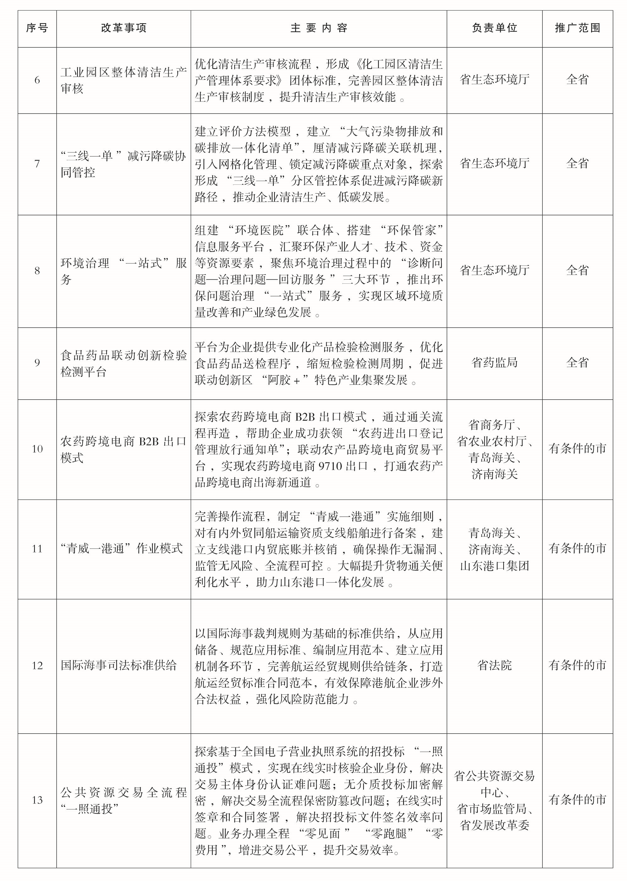 建设自由贸易试验区(以下简称自贸试验区)是党中央在新时代推进改革开放的重要战略举措。中国(山东)自由贸易试验区(以下简称山东自贸试验区)积极贯彻落实党中央、国务院决策部署,在省委、省政府坚强领导下,解放思想、守正创新,立足自身功能定位和特色特点,全力推进制度创新实践,新形成了39项制度创新成果,将在全省复制推广。经省政府同意,现就有关事项通知如下: