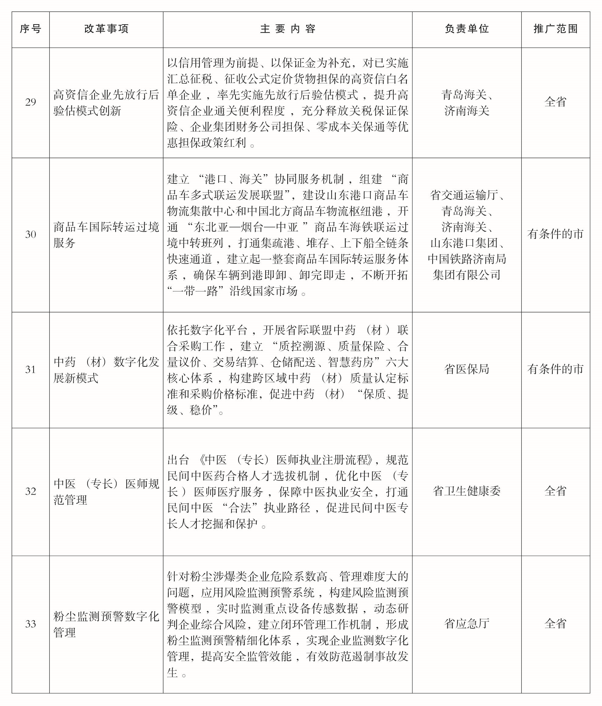 附件:山东自贸试验区39项制度创新成果复制推广工作任务分工表