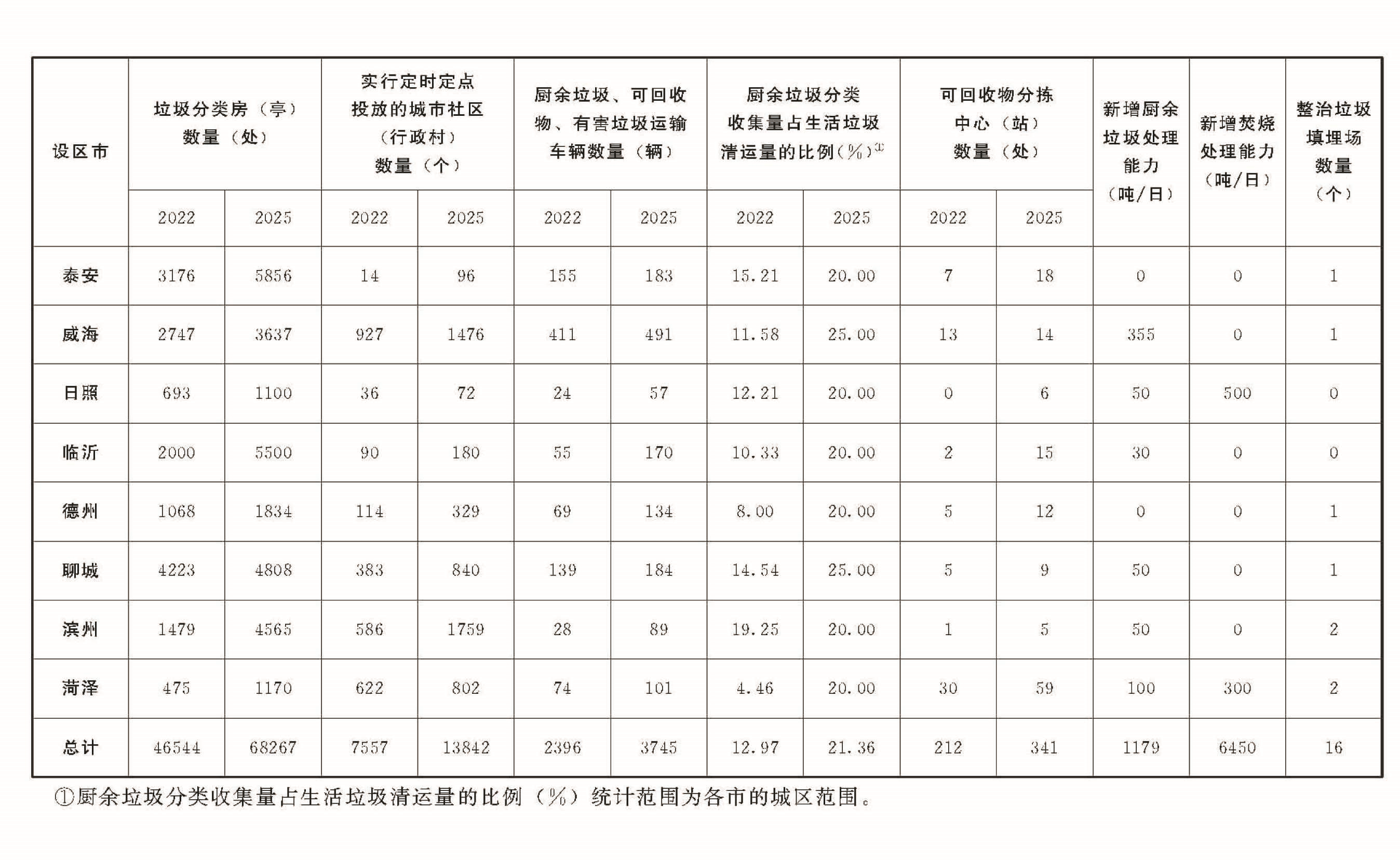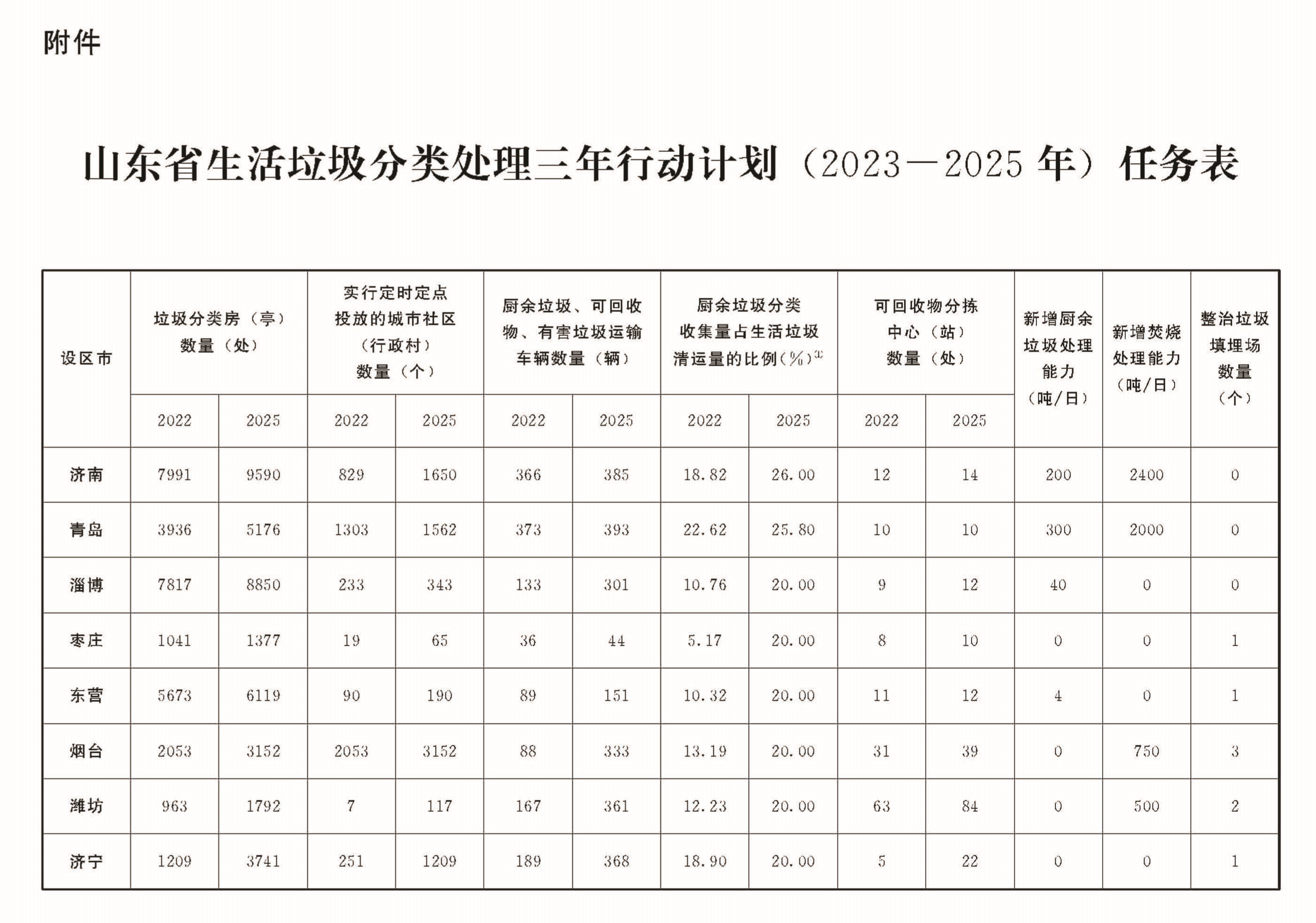 附件:山东省生活垃圾分类处理三年行动计划(2023—2025年)任务表