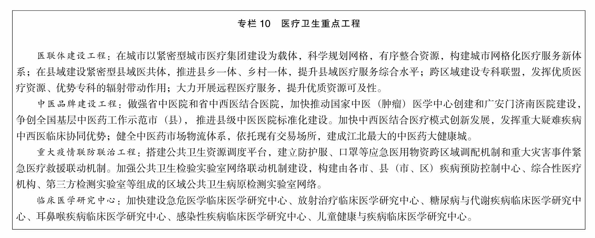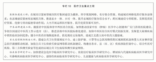 优化区域医疗卫生资源配置,依托国家健康医疗大数据中心(北方),推进都市圈内率先实现健康医疗大数据资源汇集、数据共享、创新应用和创新服务。加大医学类省重点实验室和协同创新中心建设力度,加快建设济南国际医学中心,按规划开展国家区域医疗中心建设。构建城市医疗集团和县域医共体,深化专科联盟建设,扩大优质医疗资源覆盖范围。坚持以基层为重点,强化医疗资源统筹,合理均衡布局,健全城乡基层医疗卫生体系,改善基层医疗卫生机构基础设施条件。开展都市圈重大传染病联防联控、联合监督执法、应急救援保障等公共卫生共建共享方面的合作,完善重大疫情联防联控机制,健全监测预警体系,建设传染病多渠道监测预警一体化服务平台。构建医疗保障综合服务体系,建立“互联网+”医疗服务体系,逐步将符合条件的互联网医疗服务项目纳入医保基金支付范围,落实异地就医结算。深入推进医养结合发展,加快建设居家社区机构相协调、医养康养相结合的养老服务体系。加大齐鲁中医品牌建设,完善中医药服务体系。构建更高水平的全民健身公共服务体系,联合举办全民健身赛事活动,提升百姓运动幸福指数。