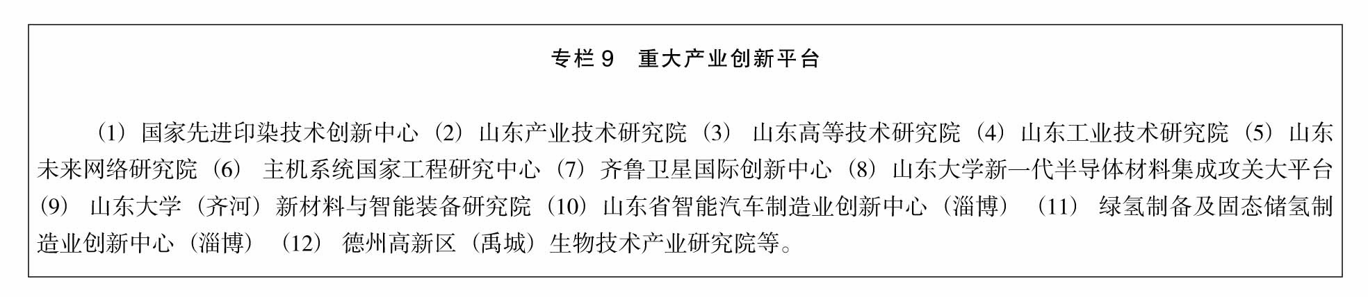 打造创新共同体。推动都市圈各市(区)有效利用“创新飞地”“研发总部”等方式,建立跨区域创新协作机制。实施齐鲁科创大走廊东延工程,协同推进济淄同城化科创大走廊先行区建设,促进淄博科学城、大学城、创新谷、科创中心等科创片区与齐鲁科创大走廊高效链接,支持淄博市张店区加快推进国家双创示范基地建设。深化泰山智慧谷“科创中国”创新基地建设,强化与驻济高校院所对接,支持泰安创建国家创新型城市。支持济南新旧动能转换起步区加快建设中科院空天动力研究中心、燃气涡轮动力研究中心、射线类科学仪器研发平台等重大创新工程,承接北京创新功能外溢,争取设立首都科研院所分支机构。