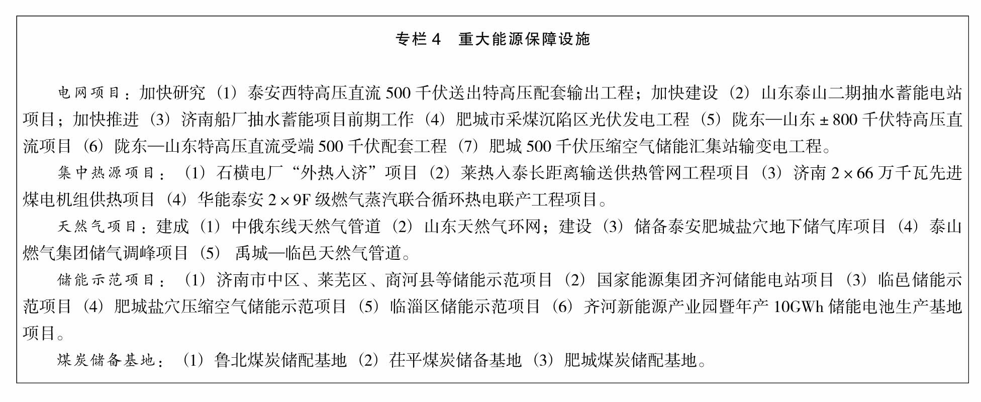 实施传统能源清洁高效利用和新型能源开发利用“双轮驱动”,大力推进煤炭清洁高效利用,构建内外协同的煤炭供应链,建设煤炭储备基地,积极参与国家大型风电光伏基地开发,大幅提高太阳能、风能、氢能、生物质能等新能源和可再生能源利用规模。优化都市圈电力主干网架结构,强化电力调峰能力建设,完善城镇输配电网络,提高都市圈电网输电能力和抗风险能力。加强区域天然气干线管网互联互通,规划实施内联外通相关工程,提升天然气调峰储配能力。强化与青岛、烟台等市沿海LNG接收站联通,加快推进山东天然气环网干线和章丘—青州联络线输气管道等建设,实施跨区域天然气管网和运营平台建设。因地制宜稳妥推进清洁取暖,加大民用、农业种植和养殖散煤替代力度,完善清洁取暖长效机制,防止散煤复烧。统筹区域工业低温余热利用,依托电厂、大型工业企业开展远距离供热示范,淘汰管网覆盖范围内的燃煤锅炉和散煤,推动肥城市、聊城市茌平区等依托丰富热源实施外热入济项目,加快实施莱热入泰等项目,推动济南都市圈供热一体化,打造北方地区跨区域能源合作典范。