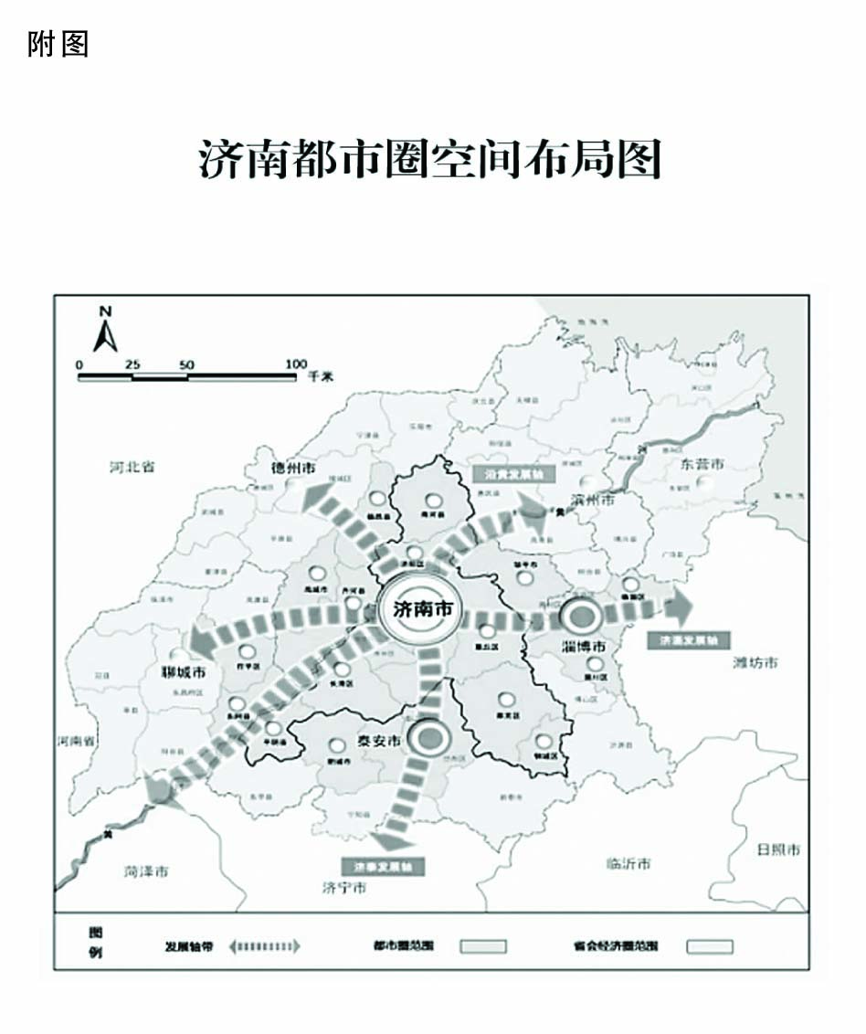 济南都市圈地处黄河下游、山东半岛城市群中西部,是我国城镇化战略格局中沿海纵轴的重要组成部分,是黄河流域生态保护和高质量发展战略的重要承载区,在促进全国由南向北扩大开放、由东向西梯度发展、加快构建新发展格局中战略作用突出,在社会主义现代化国家建设大局中具有重要地位。济南都市圈以济南市为中心,与联系紧密的淄博市、泰安市、德州市、聊城市、滨州市共同组成。主要包括济南市全域,淄博市张店区、淄川区、周村区、临淄区,泰安市泰山区、岱岳区、肥城市,临邑县、齐河县、禹城市,聊城市茌平区、东阿县,邹平市,面积约2.23万平方公里,常住人口约1810万人。规划期至2030年,展望至2035年。