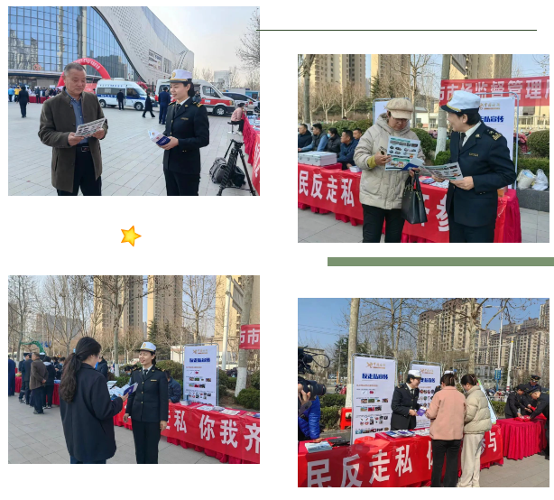 为增强群众的反走私责任感,夯实反走私群众基础,不断深化反走私综合治理工作,近日,泰安市打私办联合泰安海关开展“全民反走私,你我齐参与”的反走私宣传,呼吁群众积极举报违法行为,共同维护社会和谐稳定。