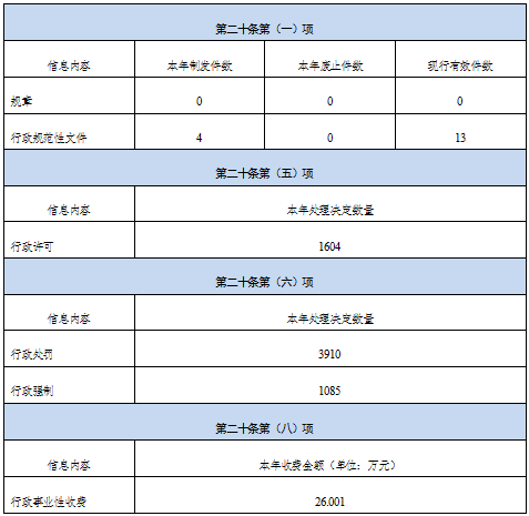 5.本年度《主动公开政府信息情况统计表》中的“行政许可”“行政处罚”“行政强制”统计口径说明:其统计范围除了山东省公安厅作出的行政执法数据外,还包含山东省公安厅出入境管理局、山东省公安厅交通管理局、滨海公安局、齐都公安局、银山公安局、机场公安局的行政执法数据,具体情况参照山东省公安厅政府信息公开栏目中已公开的《山东省公安厅2024年度行政执法年度数据统计表》。