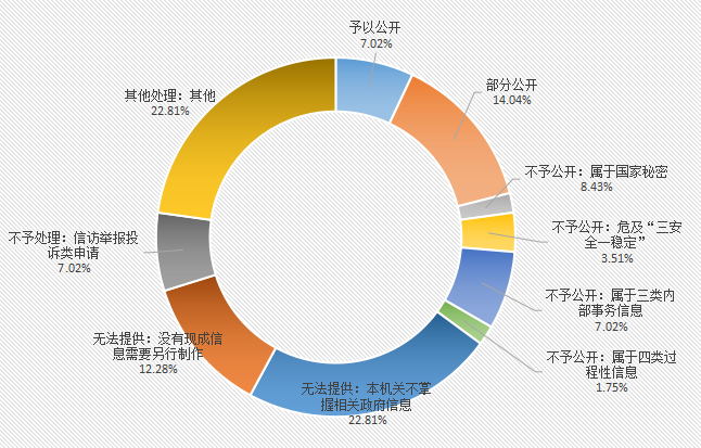 2.规范办理依申请政府信息公开。进一步优化依申请公开流程,按照省政府办公厅部署安排,开通了在线依申请公开平台,进一步规范答复告知书的内容与格式,提高答复的及时性和准确性。今年以来,办结依申请政府信息公开57件,按时办结率100%。