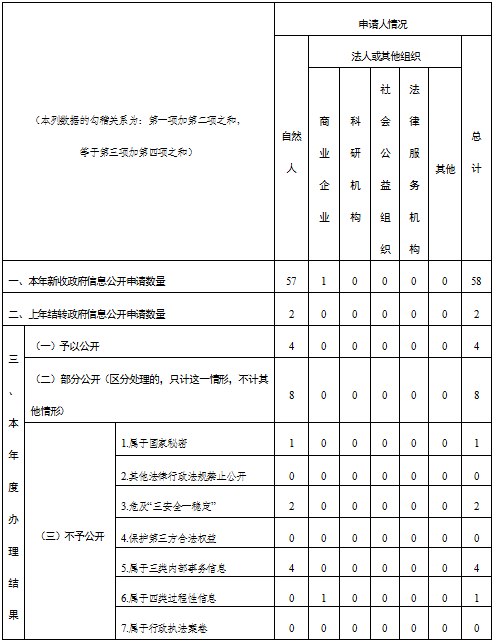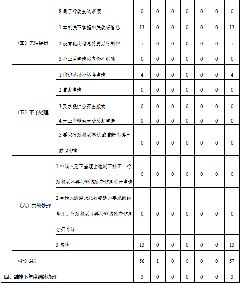 三、收到和处理政府信息公开申请情况统计表