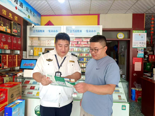 织密“普法宣传”网,营造共治氛围。坚持线上线下相结合,拓宽普法宣传覆盖面。线上利用微信公众号、短视频等新媒体平台广泛宣传打击烟草走私知识。线下深入开展“送法入户”等主题活动,向零售客户和消费者普及识假辨私知识,揭示假私卷烟的严重危害。