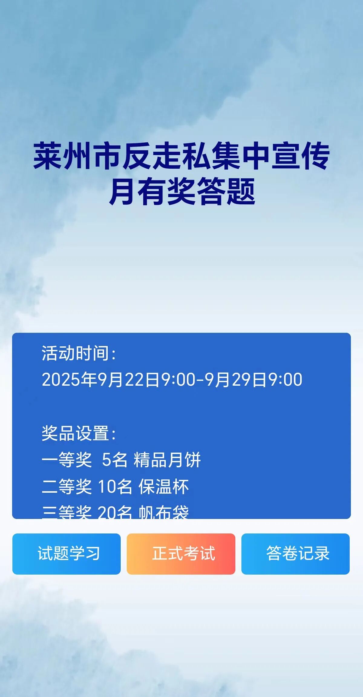 网络答题巩固知识。组织开展反走私集中宣传月网络有奖答题活动。市民可通过手机端便捷参与,题目涵盖反走私政策、常识、案例等多个方面,通过答题巩固学习成果,检验宣传成效,进一步扩大宣传覆盖面。