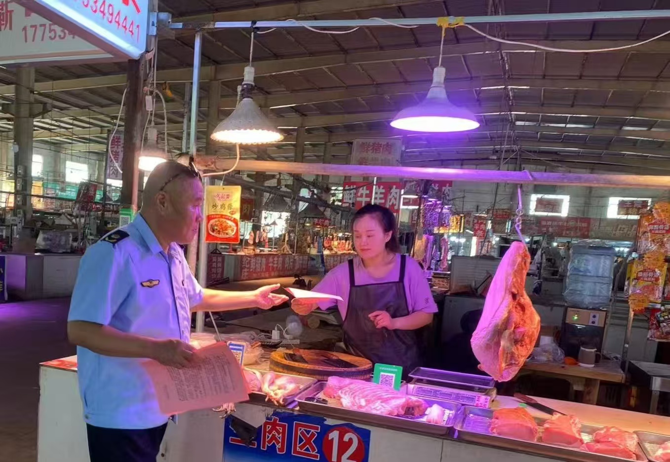 二是强化宣传,提升责任意识。在检查过程中,执法人员积极向相关生产经营者宣传食品安全法律法规和相关政策,督促严格履行进货查验义务,强化责任意识,从严把控进货、销售、储藏等各个关键环节,严防走私冻肉、不合格肉类产品流入市场,确保食品来源合法合规,为广大人民群众“舌尖上的安全”保驾护航。