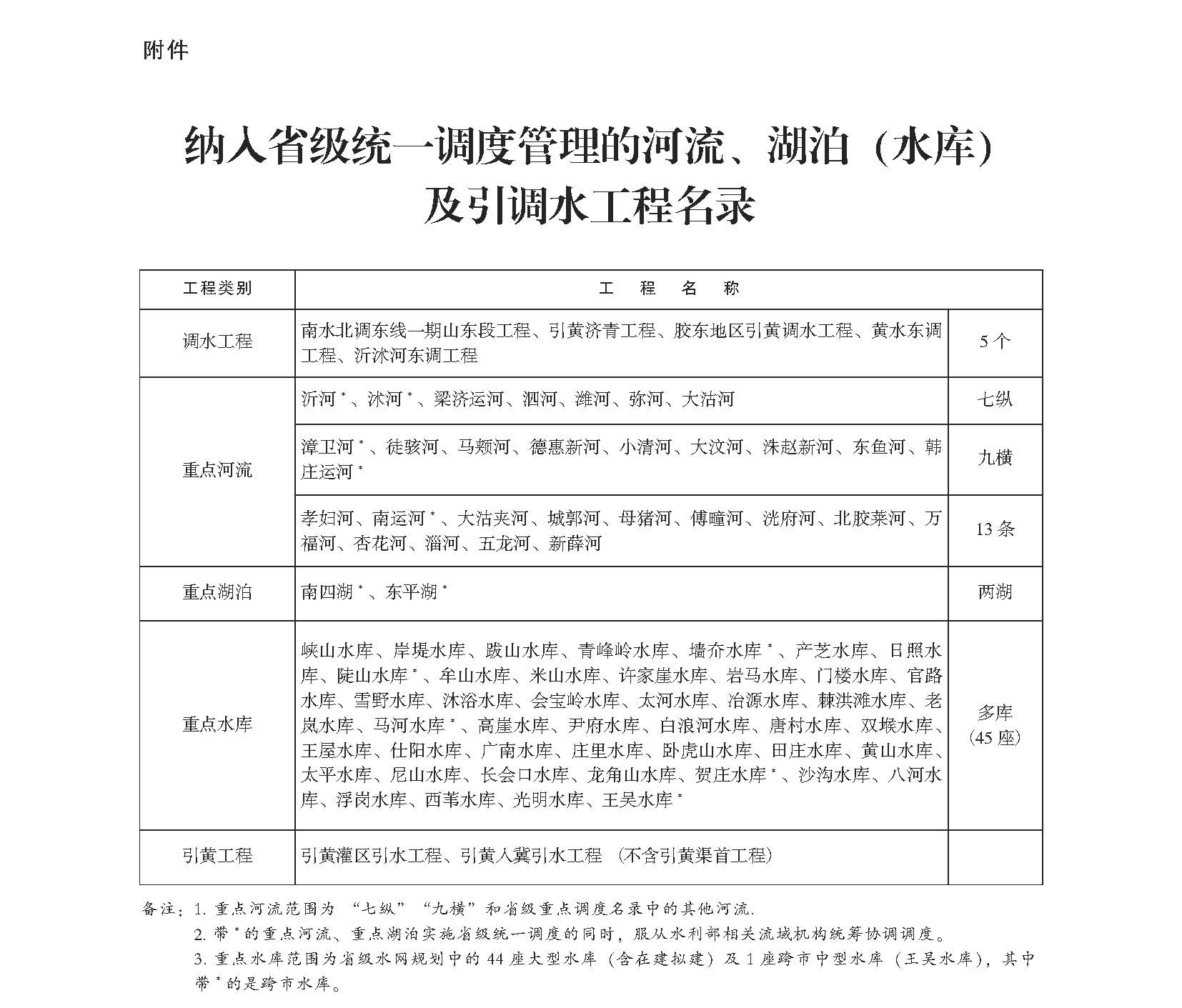 附件:纳入省级统一调度管理的河流、湖泊(水库)及引调水工程名录