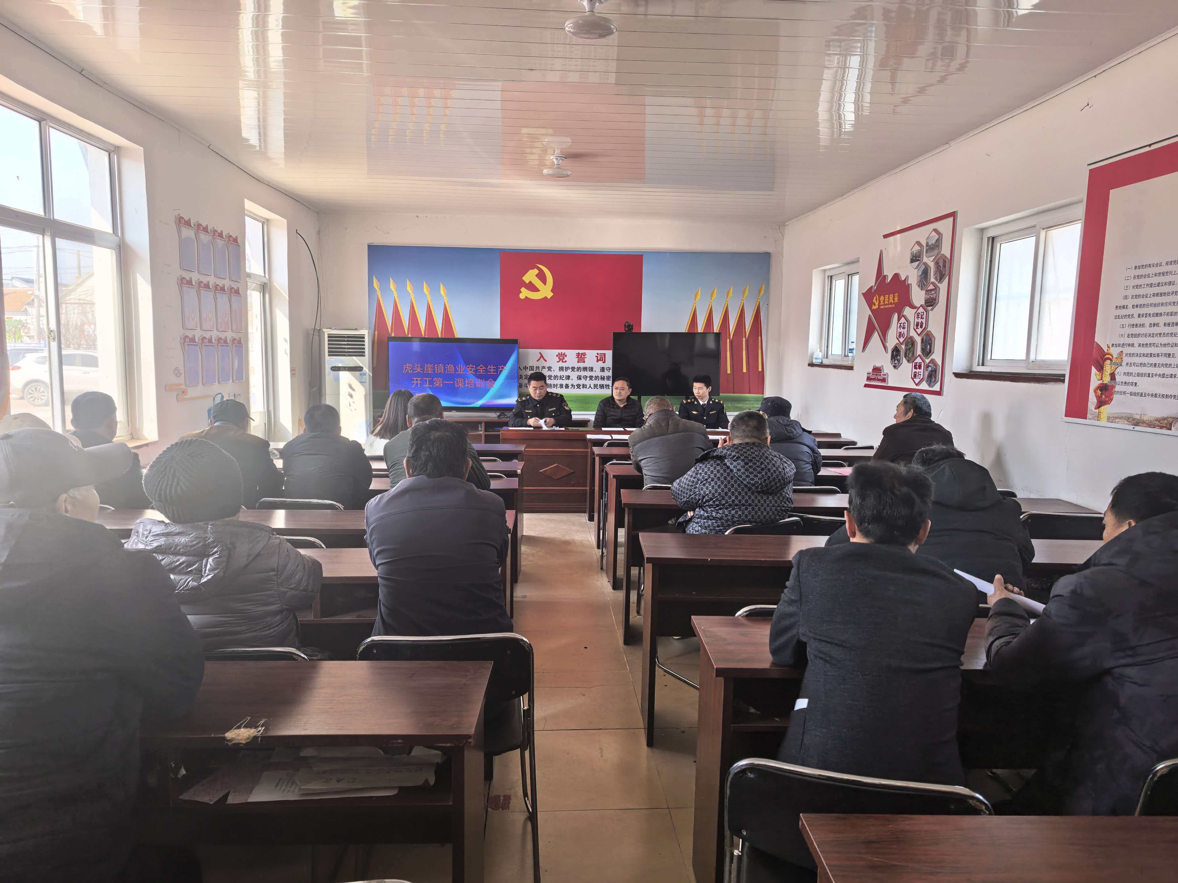 莱州市实施"培训+执法+宣传"三融合工作模式,将反走私宣传深度融入安全生产培训。采取"现场授课+案例警示"形式,围绕渔船"六防"要求、船舶适航自查等重点内容开展实操讲解,严格落实"不开课不复工、不上课不上岗"要求,实现辖区渔港码头、渔业企业和从业人员全覆盖。